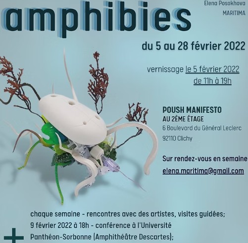 L’exposition Amphibies organisée par Maritima se déroulera du 5 a 20 Février au Centre d’Art - POUSH Manifesto en partenariat avec Acqua Foundation et Sorbonne Art Gallery,