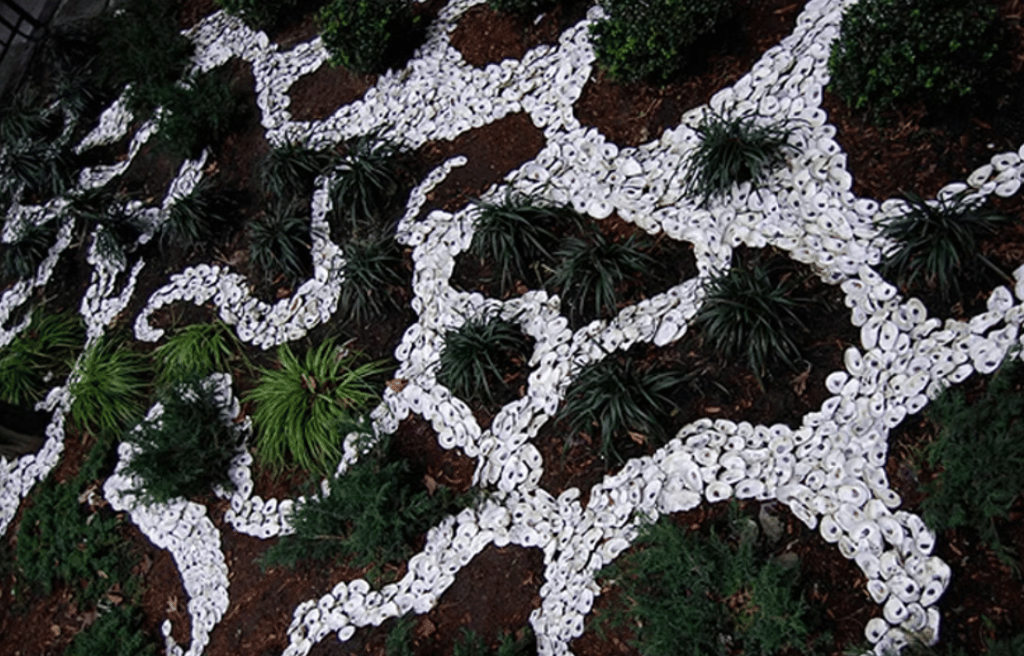 My inspirations and source material are eclectic ranging from field science, Japanese garden design, permaculture, rococo ruffles, renewable energy, oysters, reef design, biomimicry, microbiology, atmospheric science, bioinformatics, anthropology and philosophy.